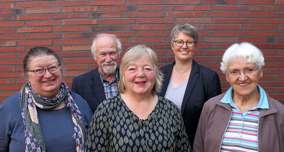 Wir, Gabriele Hahn-Hartwig, Horst Hartwig, Christina Mesteri, Pastorin Sabine Behrens und Marianne Quednow besuchen die Geburtstagsjubilare in der Emmaus-Gemeinde.