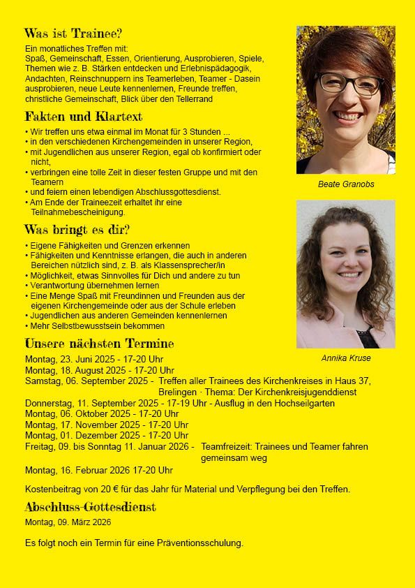 Ich bin damit einverstanden, dass angegebene Kontaktdaten für Informationen und Einladungen im Rahmen der kirchlichen Jugendarbeit (Freizeiten, Projekte, Seminare, Jugendleiterausbildung, …) im Kirchenkreis Burgwedel – Langenhagen gespeichert und genutzt werden können.
