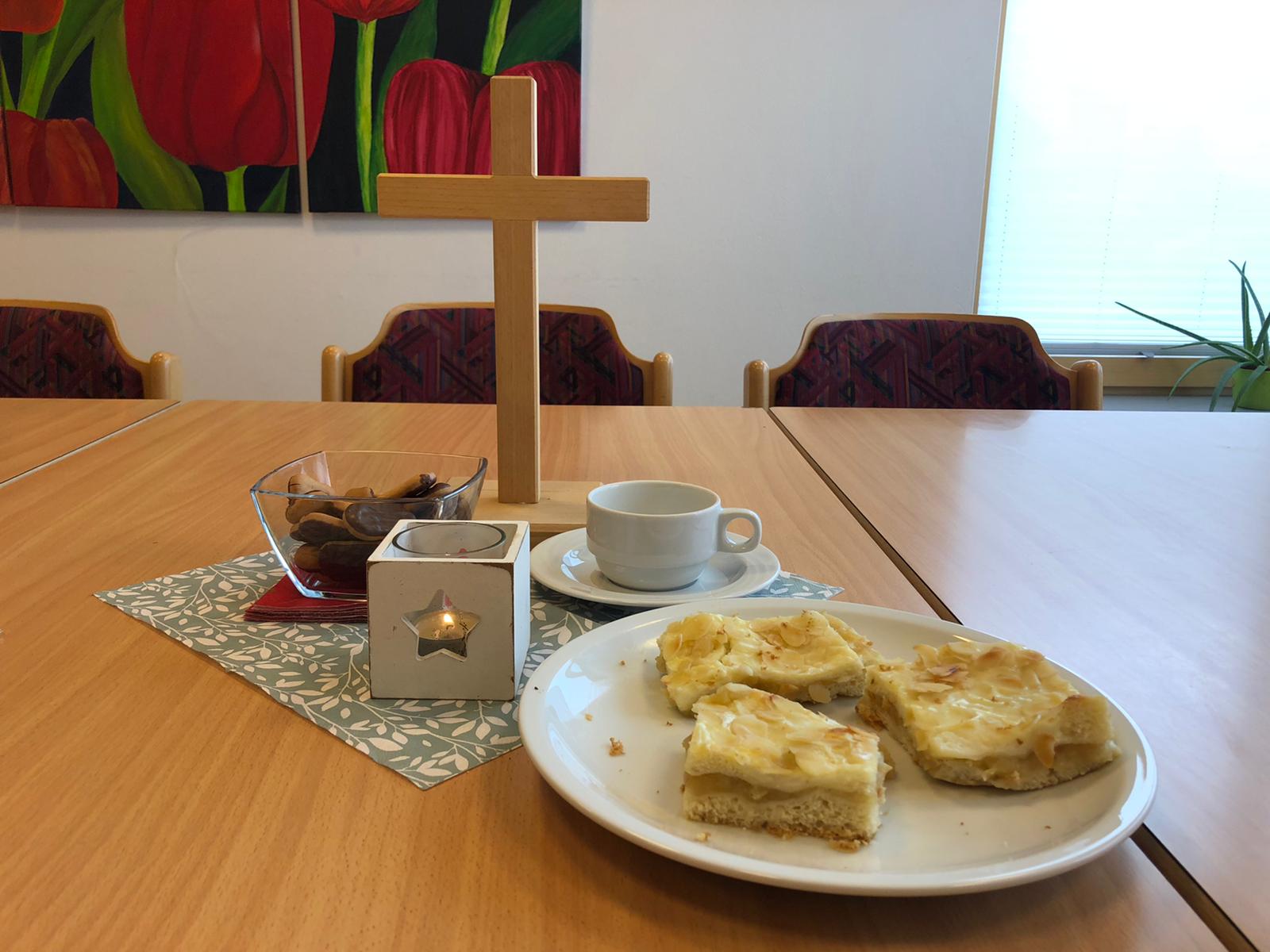 Pastorin Sabine Behrens hält den Gottesdienst und im Anschluss daran laden wir ins Gemeindehaus zum Kirchkaffee ein.