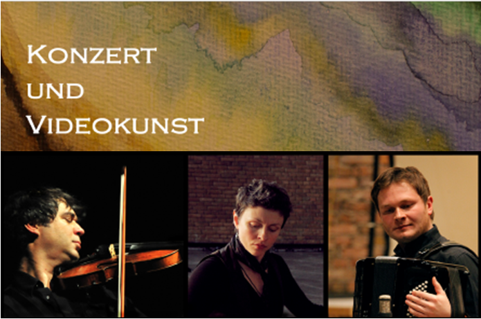 Wunderschöne Musik mit Robert Kusiolek (Akkordeon), Anton Sjarov (Violine, Klangobjekte) und Elena Chekanova (live Elektronik, Klavier) gepaart mit Videokunst.